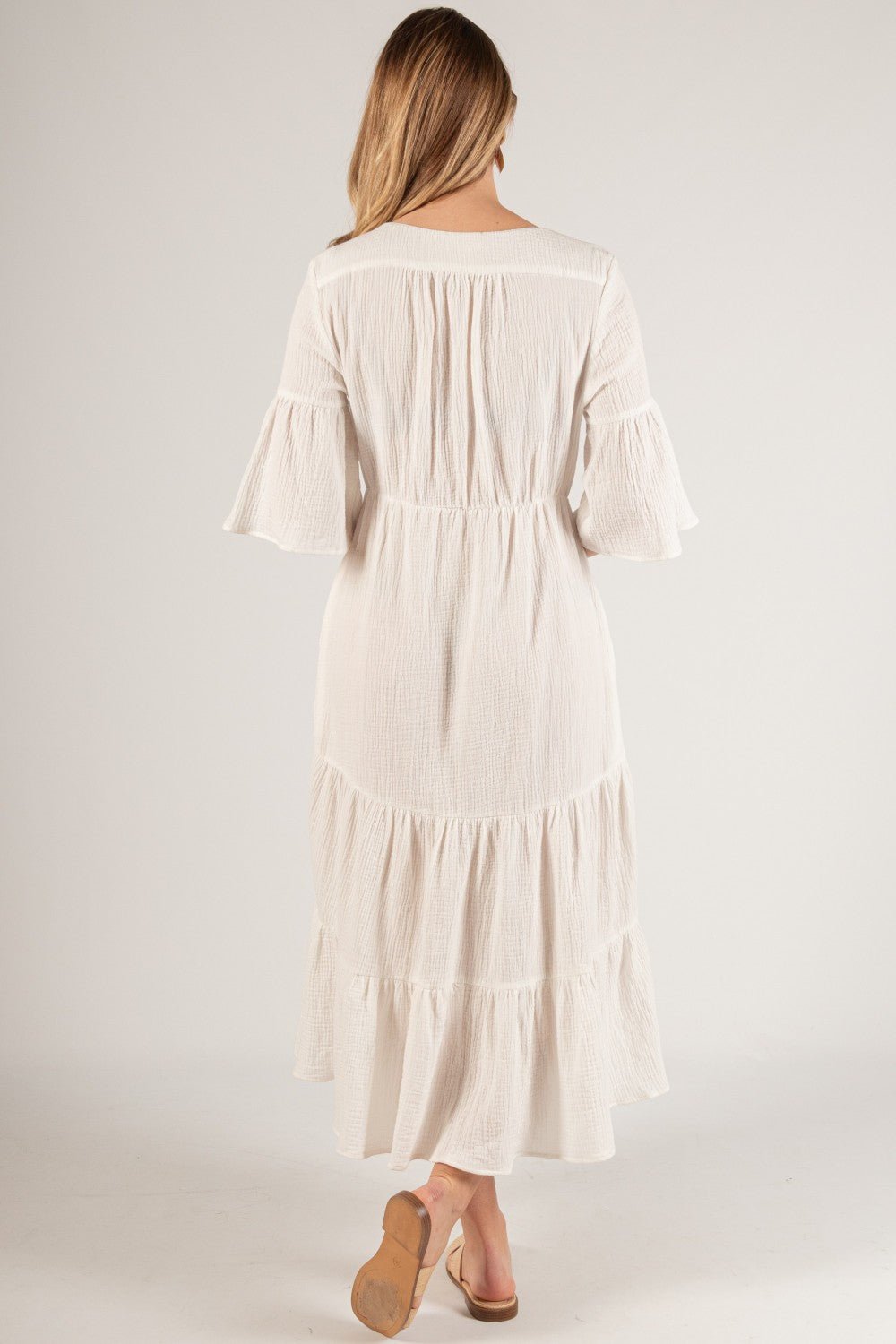 Cotton Gauze Tiered Midi Dress – Effortless & Feminine