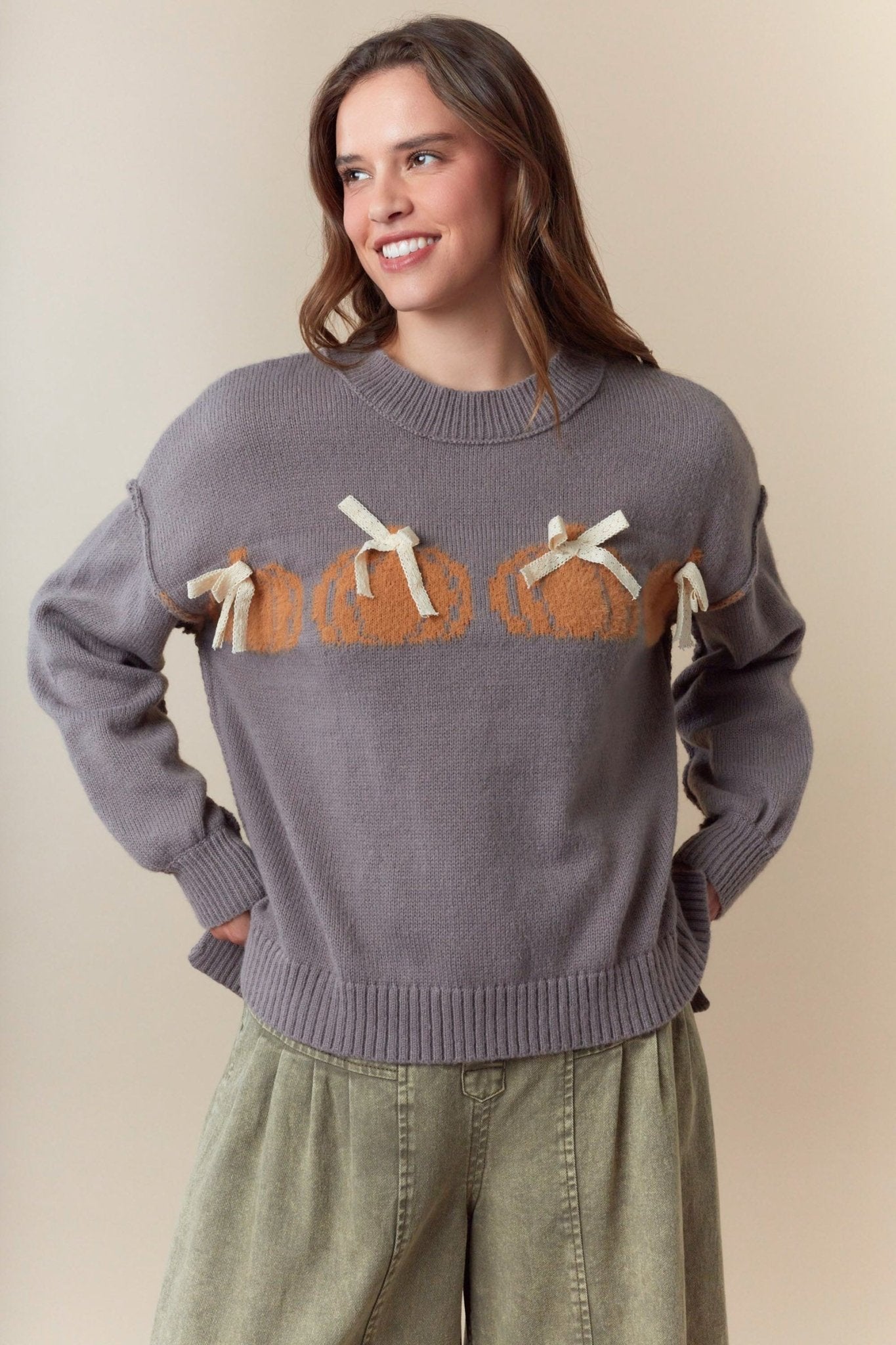 Nothing says fall vibes quite like our Pumpkin Bow Knit Sweater. With its sweet little pumpkin graphics topped with dainty bow accents, this sweater is playful, cozy, and oh-so-perfect for the season. The relaxed fit and soft knit make it feel like a warm hug—ideal for pumpkin patch adventures, hayrides, or those snuggly nights in with a blanket and cider. 🍂