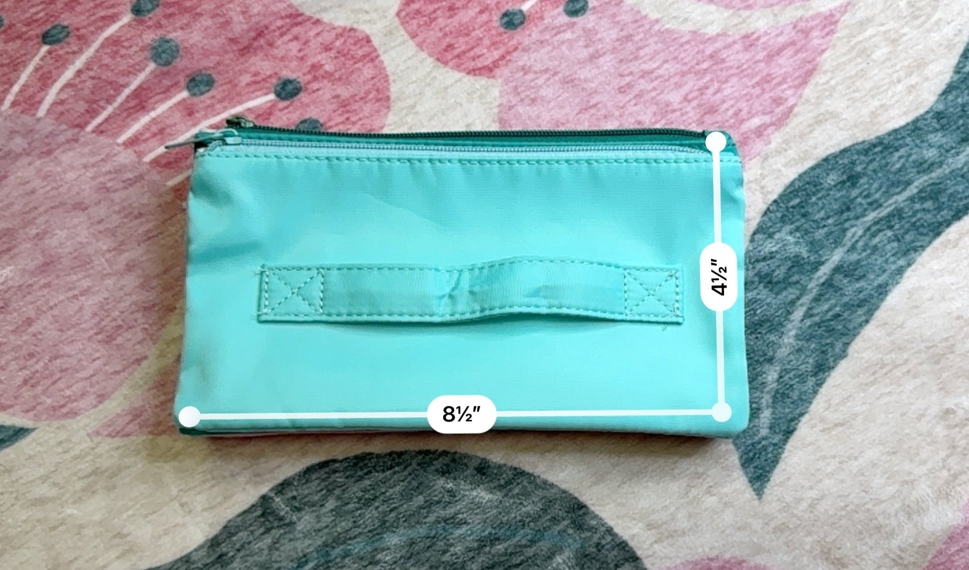 Measuring 8.5 inches by 4.5 inches when closed, it’s compact enough to fit into handbags, backpacks, or carry-ons while still holding everything you need for on-the-go touch-ups. Its durable construction ensures long-lasting use, and the multiple compartments help you separate products for quick access and easy organization.