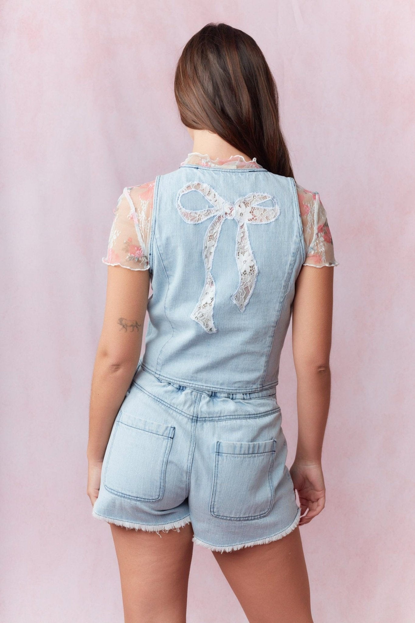 Denim Vest with Lace Bow Back Detail – Sweet & Chic Layering